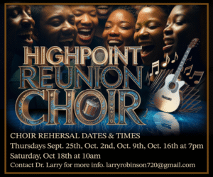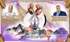 We are so excited about celebrating 40 YEARS IN MINISTRY. Everyone is invited to join us for this great time of CELEBRATION!! We are kicking things off October 17th at 7pm with Pastor Cordelia Wallace, on Saturday, October 18th we will be having an ALL STAR BASKETBALL GAME and VOLLEYBALL TOURNAMENT at 3pm. If you would like to sign up to play, please use the QR CODE on the sign up sheet(to play you must be a member of Highpoint, all games are for ladies and gents) We will conclude this wonderful weekend with our HOMECOMING SUNDAY SERVICE with Pastor C Shawn Tyson!! Our REUNION CHOIR will be singing on Homecoming Sunday so make sure you see the rehearsal dates listed so you can participate! You don’t want to miss any of these great services or events so make sure you make plans now to be in the house!