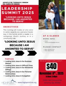 Everyone is invited to join us for our Leadership Summit taking place on November 8th from 9:30am-2:00pm. There are some great topics that will be discussed by our keynote speakers this year so make sure you contact Elder White to register now. The cost is $40 Per person. This training will involve all who serve in some capacity as a personal leader (e.g. in the home) and/or a leader in a workgroup, church auxiliary or in a community role. We hope to see all of you there!